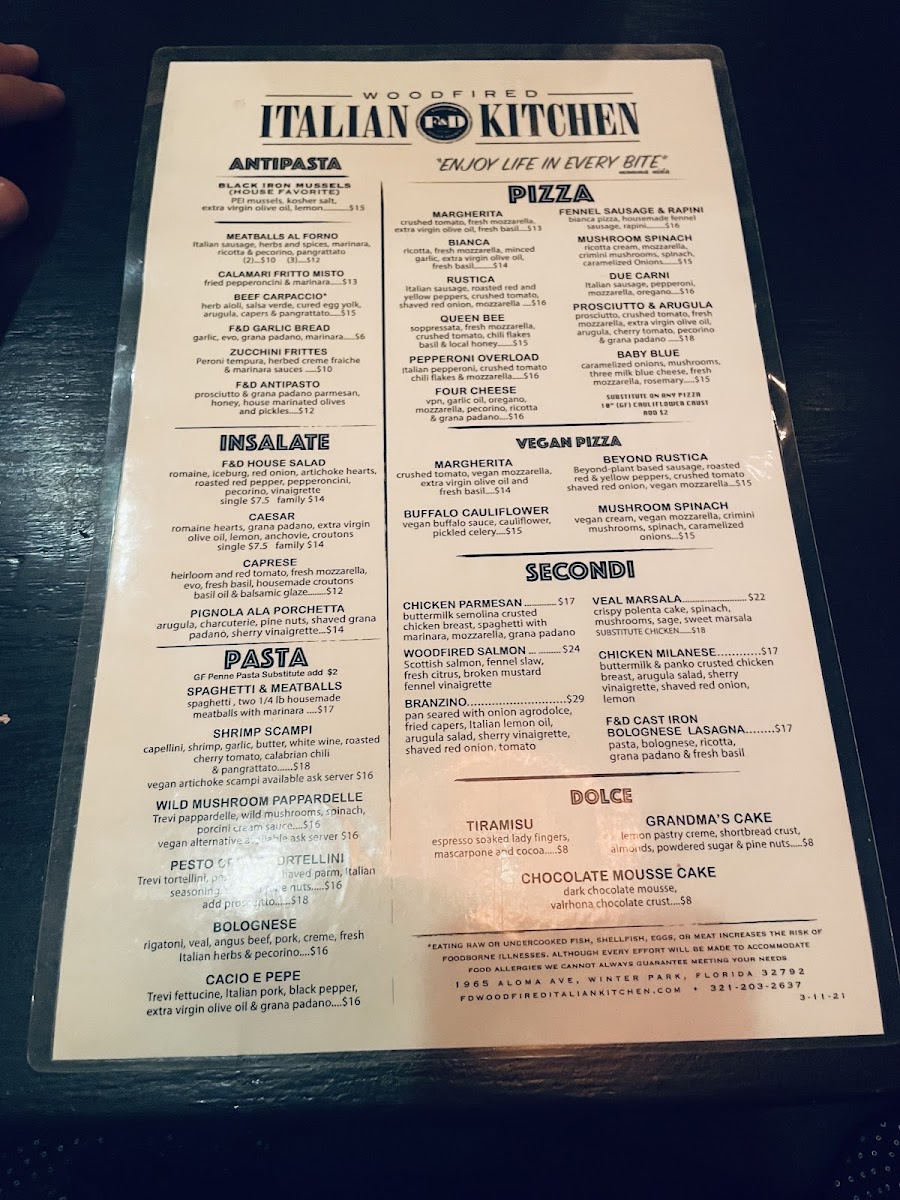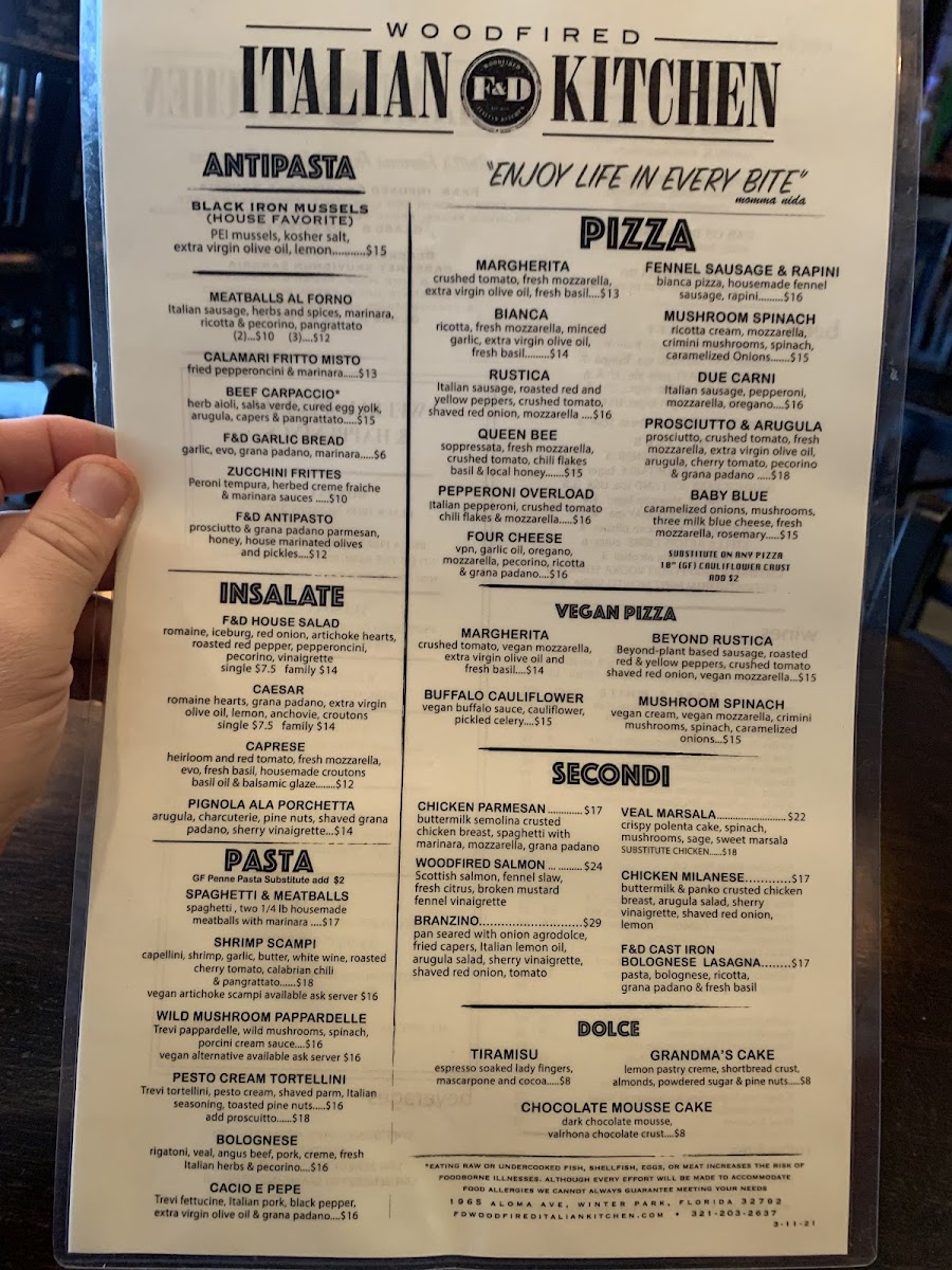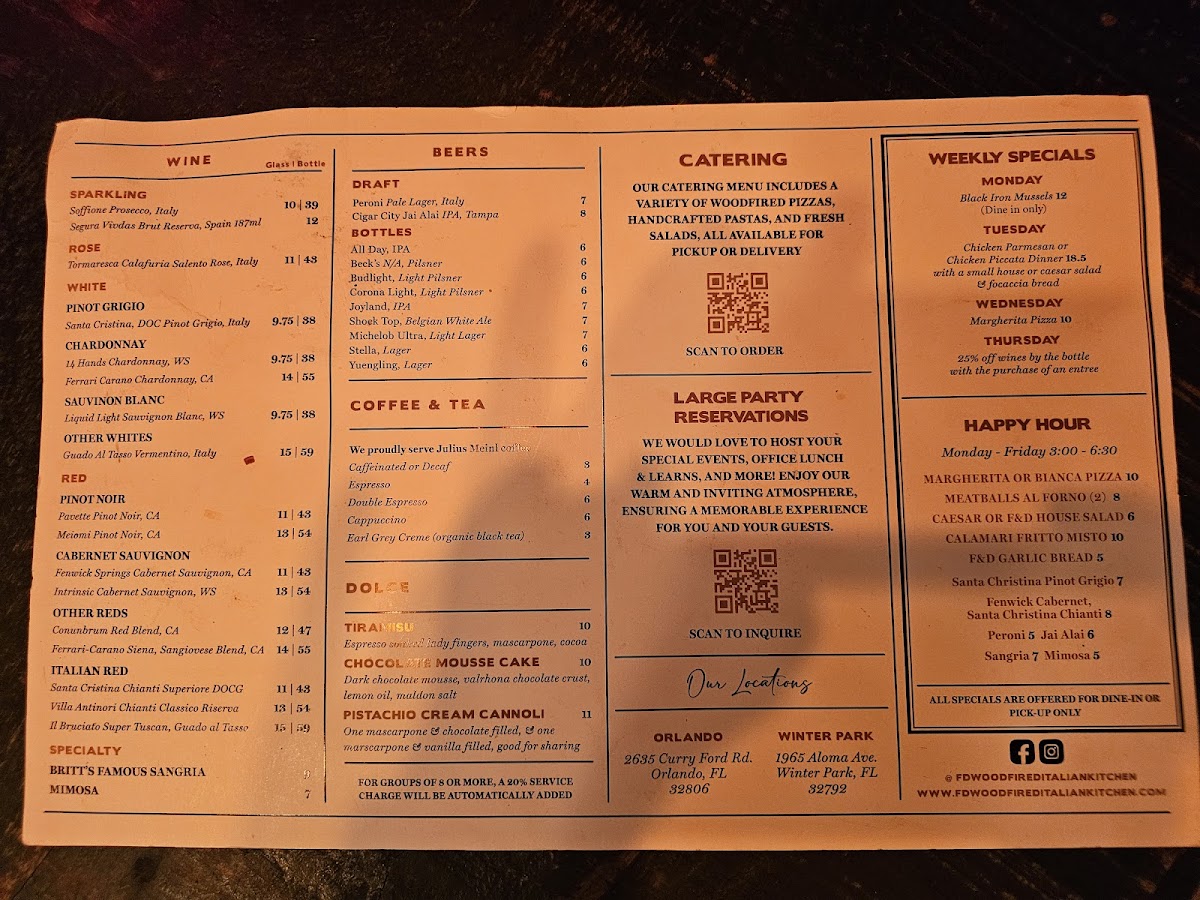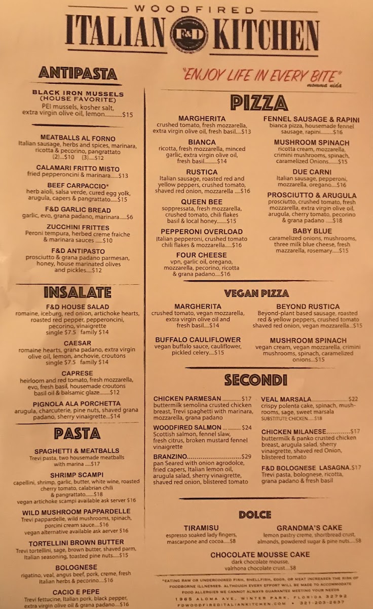 Welcome to F&D Woodfired Italian Kitchen, a charming culinary haven located at 1965 Aloma Ave, Winter Park, FL. This delightful establishment marries authenticity with a comforting atmosphere, making it a perfect spot for lovers of Italian cuisine.